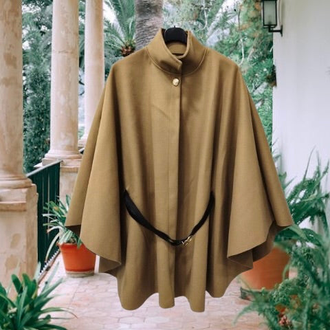 Adoptez une allure chic et sophistiquée avec cette cape ocre à ceinture fine, une pièce intemporelle qui sublime toutes les silhouettes ✨