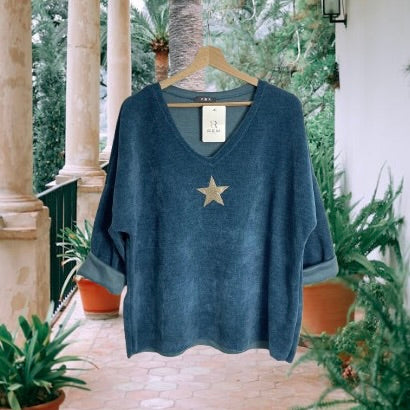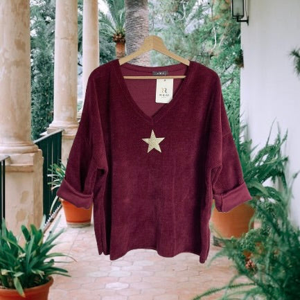 Un petit pull chic et confortable, qui allie douceur du velours et éclat d’une étoile scintillante.