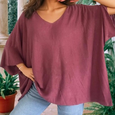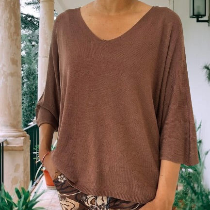 Avec ses manches chauve-souris élégantes et son encolure en V subtile, il apporte une touche de sophistication décontractée à toute garde-robe.