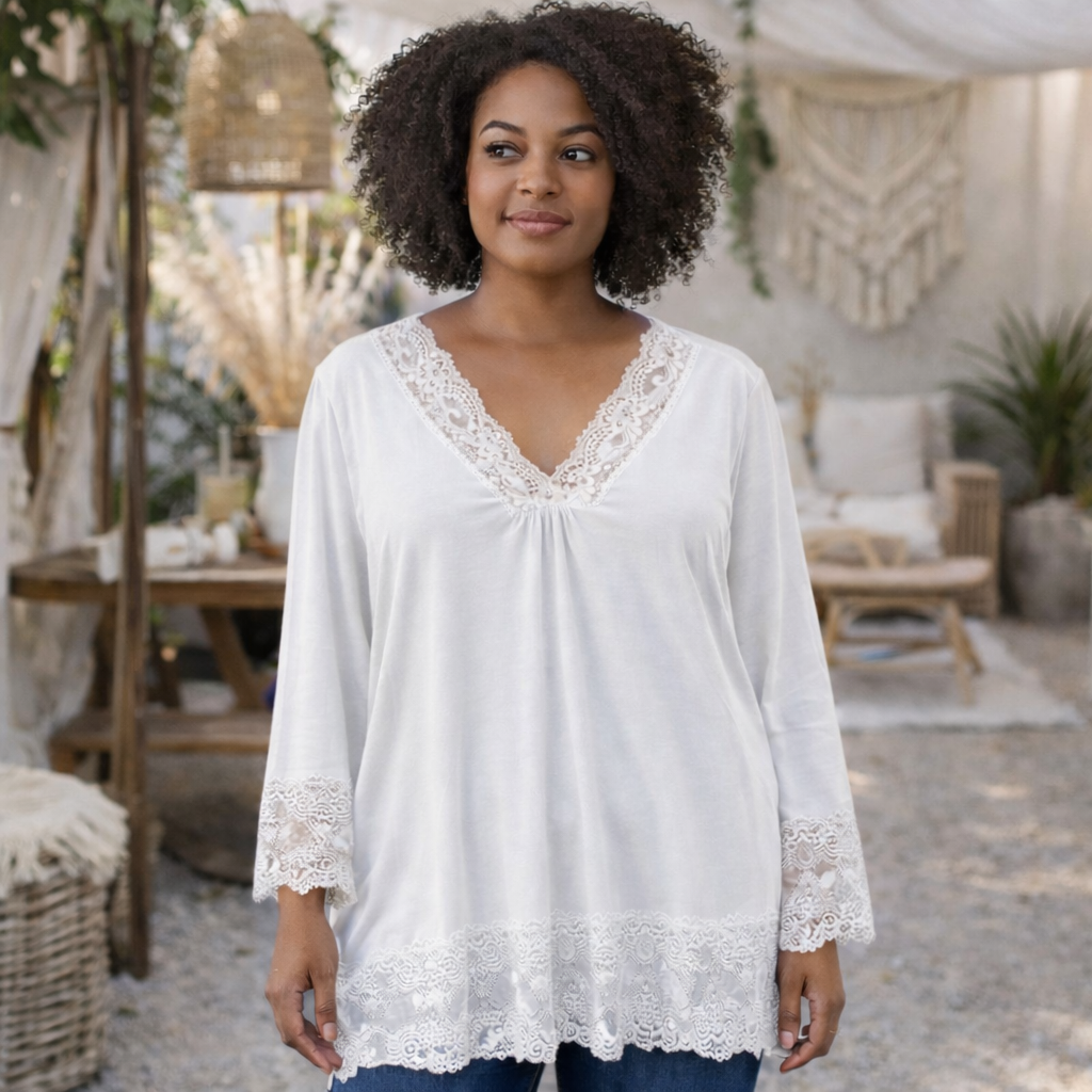 Col v dentelle : un détail délicat qui ajoute une touche de sophistication.